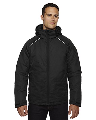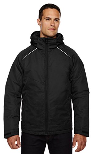 Binding : Apparel Product Description INSULATION: 140 gsm in body; 80 gsm in sleeves, hood and collar, Water resistant finish, 100% polyester full dull dobby, 4.6 oz./yd2/155 gsm, LINING: 100% polyester taffeta with embossed print. inside storm, placket with brushed tricot chin guard, thermal brushed tricot-lined collar and pockets, centre front reverse coil zipper, zip-off adjustable thermal hood with back shockcord, adjustable shaped cuffs with tabs and stretch storm cuffs, lower pockets with reverse coil zippers, inside security pocket, thermal retention shockcord at hood and drop back hem, flat reflective piping at front and back, details at side panels, sleeve panels, shoulder yoke and hood , audio port access through inside chest pocket, back yoke with asymmetric design. 0