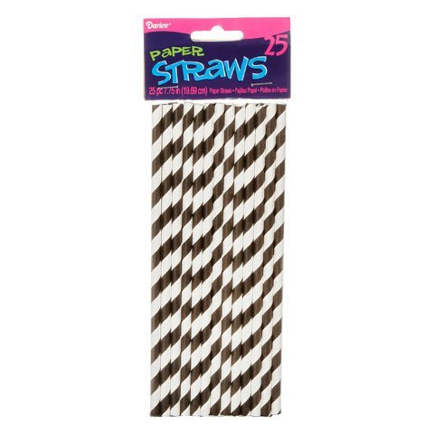 Product Description Paper party straws are fun to add to drinks, cupcakes, cake pops, decorations, and more. Each black and white striped paper party straw measures 7.75 inches long. 25 pieces per package. 0