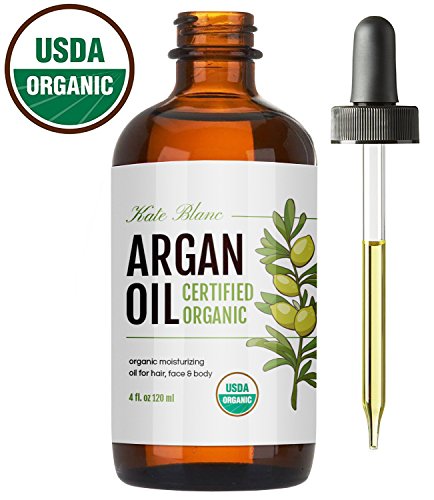 -. Title : Moroccan Argan Oil, USDA Certified Organic, Virgin, 100% Pure, Cold Pressed by Kate Blanc. Stimulate Growth for Dry and Damaged Hair. Skin Moisturizer. Nails Protector. 1-Year Guarantee.