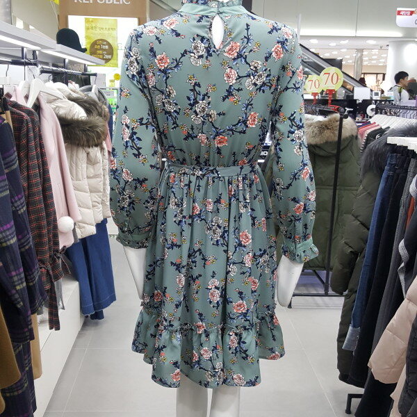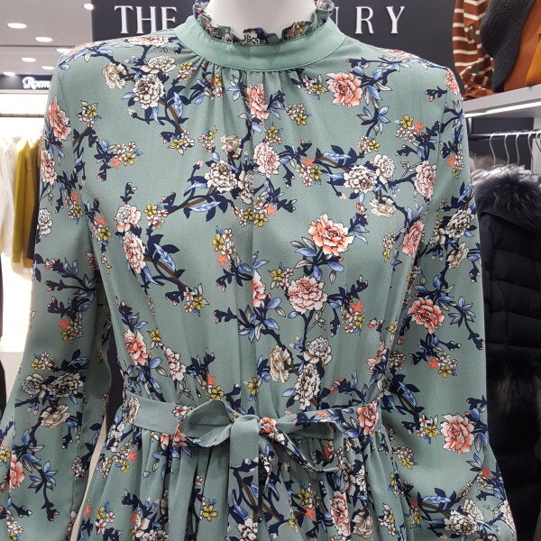 커러별로 플라워프린팅이 다른 워피스입니다 큰 플라워로 세련되며 우아한 느낌을 드리는 민트컬러와 잔잔한 플라워프린팅으로 무난하지만 여리한 느낌을 드리는 블랙컬러입니다 넥라인 끈으로 리본을 묶어주실 수 있으며 허리셔링으로 슬림한 라인을 연출해드립니다