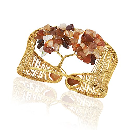 -. Title : Handmade Gold-Plated Tree of Life Gemstone Adjustable Cuff Bracelet, Many Colors Available