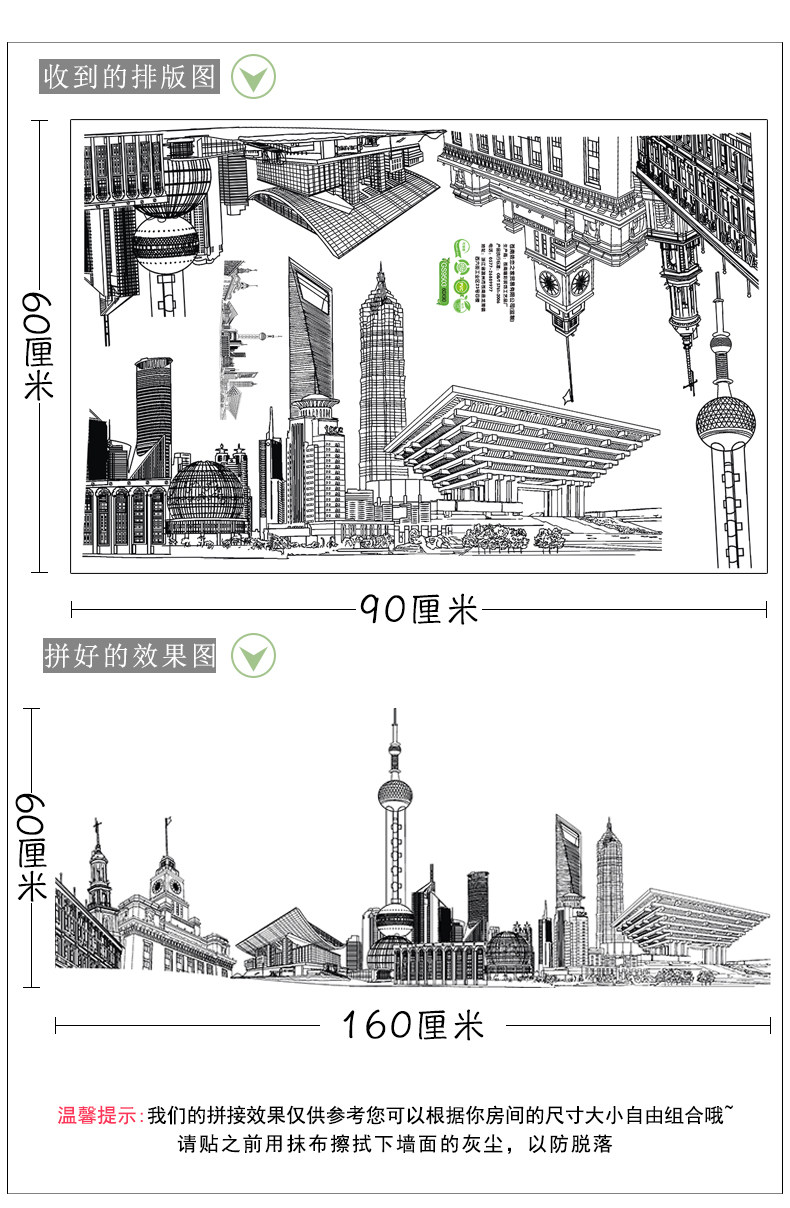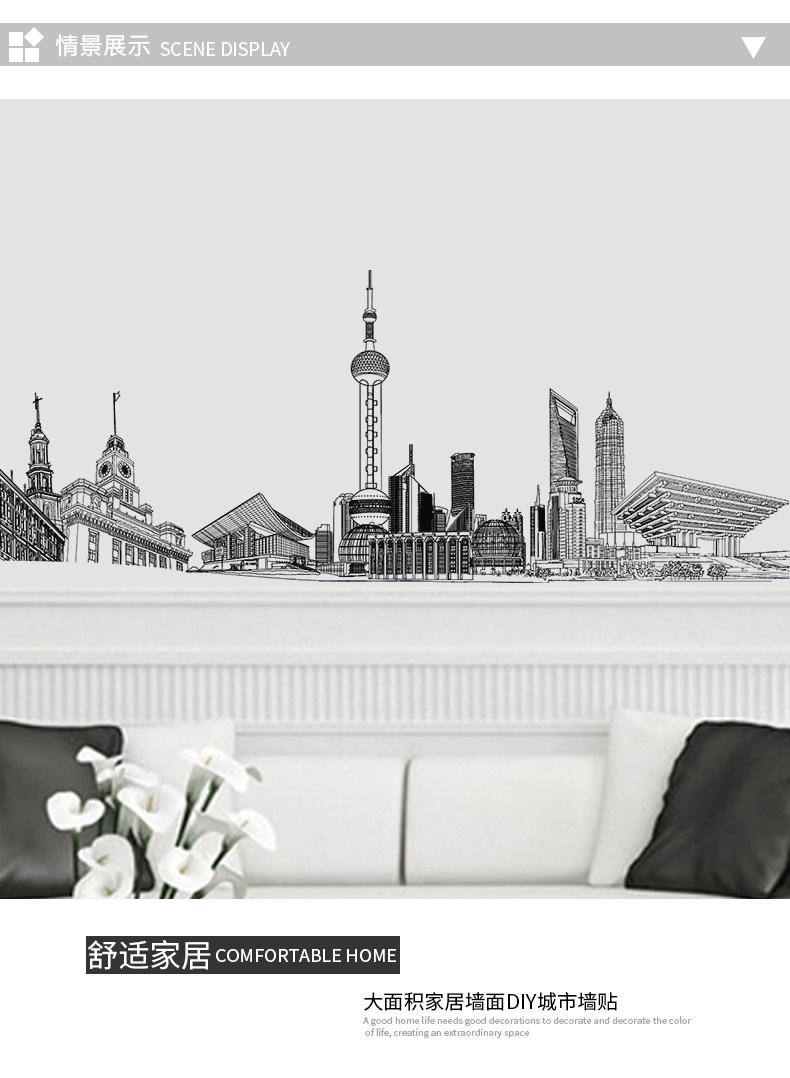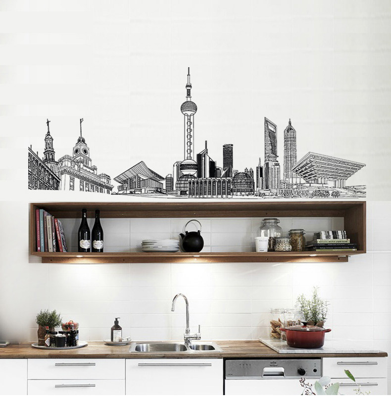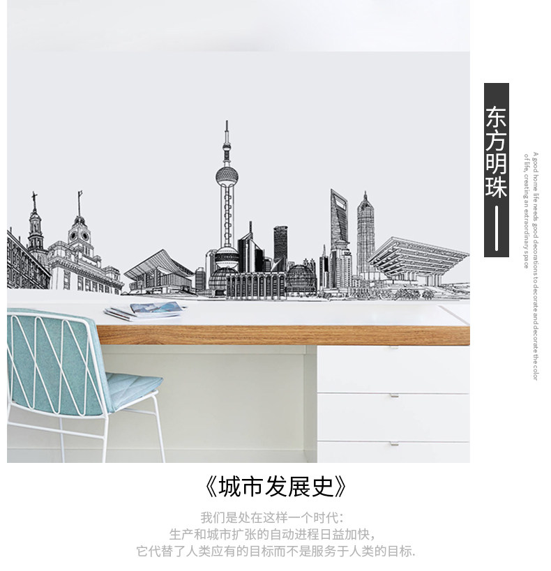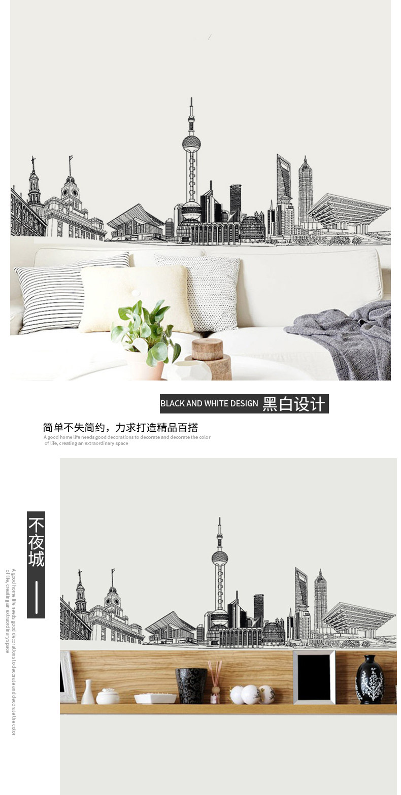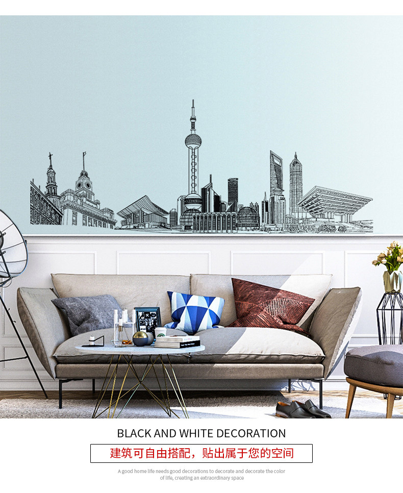 简约创意城市建筑个性装饰贴纸墙贴客厅卧室房间走廊自粘墙纸贴画