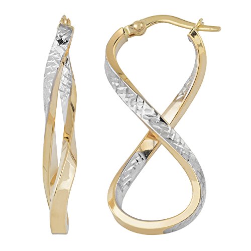 -. Feature : Made in Italy / Beautifully crafted of high quality 14 karat two-tone gold / Showcases an inifty hoop earring style / High polish and diamond-cut finishes are featured in this pair of 14k two-tone gold infinity earrings