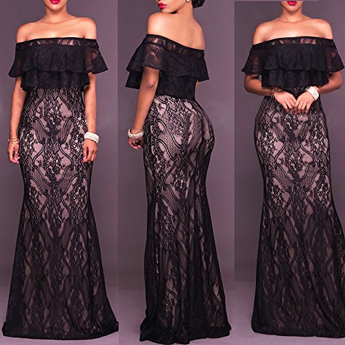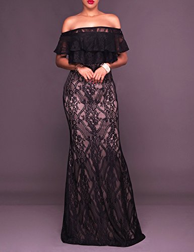 Type:Lace off shoulder ruffle bodycon long maxi dress