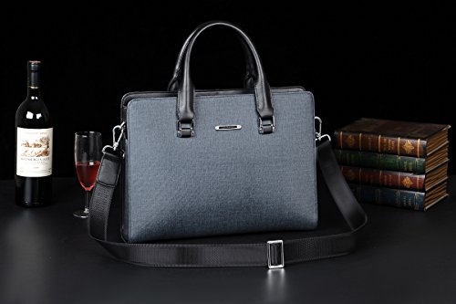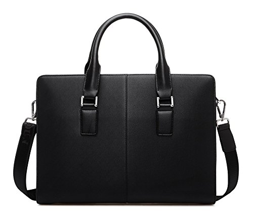 -. Feature : DIMENSIONS: (L)15.3" x (W)2.3"x (H)11.8" inch. / HIGH QUALITY MATERIAL:The briefcase is made of high quality genuine cow leather, durable polyester lining, with custom hardware, heavy-duty zipper. Zipper closure for your security. / STRUCTURE: This lawyers briefcase contains 2 big inner compartment, 2 insert pockets,1 pen pocket,1 zipper pocket,1 sandwich pocket, 6 card slots. This briefcase easily hold your 14 inch laptop, iPad, iPhone, A4 file, and other business things. / SECURE & STYLISH Hand made by professional artisans. Adjustable nylon long shoulder strap. Can be used as lawyers briefcase, cross-body bag, shoulder bag or laptop bag. Classic design is perfect for business men.