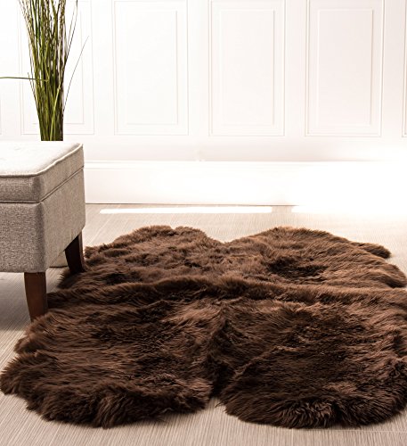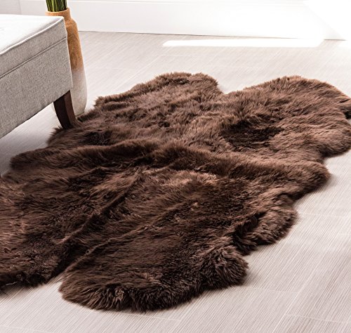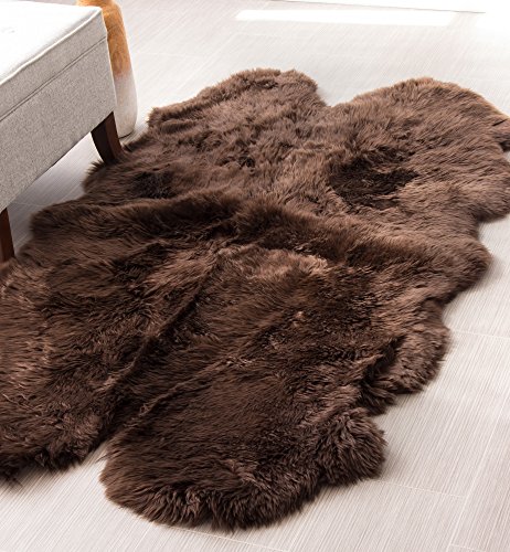 -. Brand : Super Area Rugs -. Color : Brown -. Feature : INCREDIBLY SOFT: This rug is made from 100% Sheepskin Fur which is the sofest fiber a rug can be made from. / ALL NATURAL & THERAPEUTIC : Sanitized against germs. Non-Toxic and Hypoallergenic. Serves as a seat cover as well as an area rug providing therapeutic properties. / HANDMADE: This rug is crafted using only the finest materials and made entirely by hand. / THICK & PLUSH : This sheepskin rug measures approximately 4ft. x 5ft 6in(ON THE TOP SIDE). The rug is made from the finest sheepskin from New Zealand and offers a 2+ Inch thick pile height. Because of the handmade nature of this product, each rug can vary in size up to 2-3 inches in either direction. / NON-SLIP BACKING: Features a Non-Slip Suede Backing. -. Label : Super Area Rugs -. Manufacturer : Super Area Rugs -. ProductGroup : Furniture -. ProductTypeName : HOME_FURNITURE_AND_DECOR -. Publisher : Super Area Rugs -. Studio : Super Area Rugs -. Title : Genuine Australian Sheepskin Rug Four Pelt Fur, Quarto