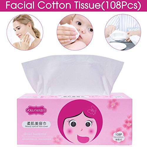 Large Soft Pure Cotton Facial Tissue Cotton Pads Tissues(210 x 195 mm, 108 pcs) for Cleaning Removing Face Eye Makeup and Nail Polish