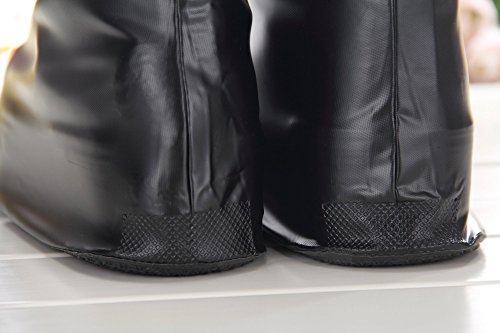 -. Feature : High Performace PVC Fabric: made of 100% high elastic PVC materials and thicken rubber sole; great waterproof and slip-resistant performance; New generation; touched soft and super comfortable wear feel. / Widely applications: protect shoes from mud spattered, rain, snow; pefectly suitable for people have to go out in rain/snow days and outdoor activities such as camping, hiking,etc; especially suitable for winter, keep your shoes dry and warm all day. / Fashion and adjustable design: fashionable sport style; Wide mounth design; easy to put on and off; Good elasticity of the surrouding on the top; easy for you to adjust to the degree of tightness. / Portable Foldable and Reusable: every pair of shoes cover comes with a waterproof package bag, you can easily put them in your bag after use. / Size: L sole length: 28cm/11 inch; XL sole length: 29.5cm/11.6 inch; XXL sole length: 31cm/12.2 inch. Please measure your actual sole length before buying. If your sole length is 29cm/11.41inch, the right size you need is length:29cm + 1.5~2cm = 30.5cm ~ 31cm, so choose size XXL(31cm) is right; if your sole length is over 29cm/11.4 inch and shoes width(picture shown) is over 10cm/3.93 inch, please don't buy this products.