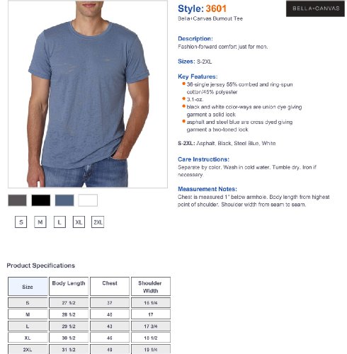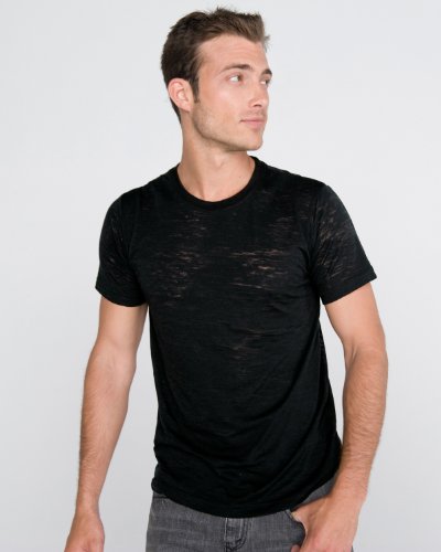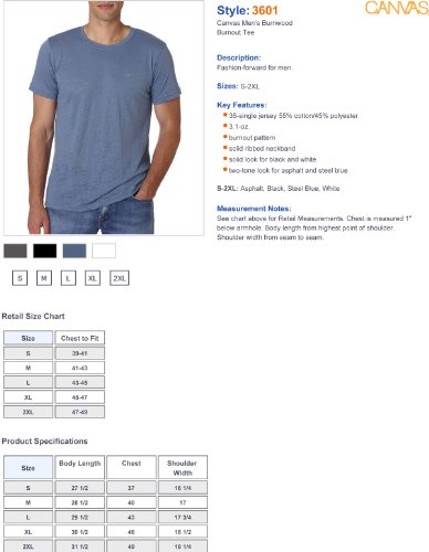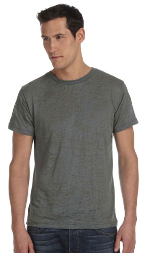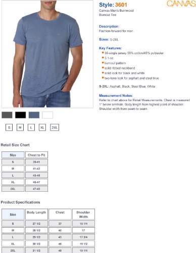 Product Description55% cotton, 45% polyester; 36-singles jersey; custom burnout crew neck; rib neckband; Black and White are union dyed, giving garment a solid look; Asphalt and Steel Blue are cross dyed for a two-tone look;0