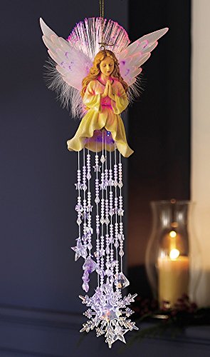 -. Feature : Spread the spirit of the season with this shimmering fiber-optic angel / Watch the strands of snowflake-shaped acrylic beads sparkle in the sunlight / Polyresin; Indoor use / 3 batteries included / Measures 22 1/2"L overall