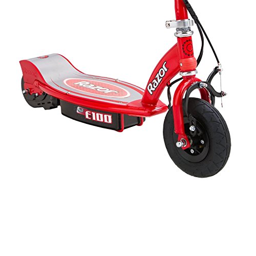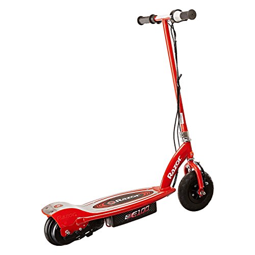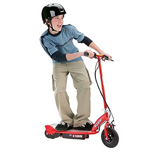 Feel the wind in your hair (underneath your helmet, of course) as you tear up the pavement on the Razor E100 Electric Scooter! A Parent's Choice Award winner, the E100 is designed for ages 8+ and features a kid-sized deck and frame constructed out of high-strength materials. The scooter reaches speeds of up to 10 miles per hour and provides up to 40 minutes of continuous use. The environmentally-friendly electric power engages a super quiet chain-driven motor - applauded by neighbors everywhere. If hours of fun are what you seek, seek no further than the Razor E100 Electric Scooter.Feature