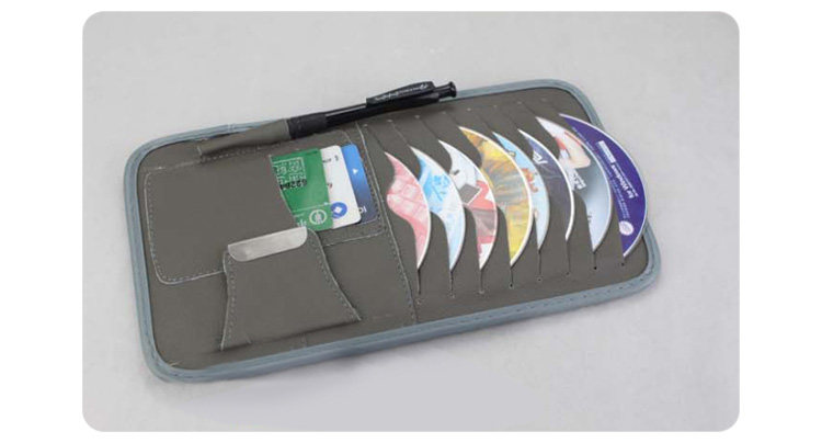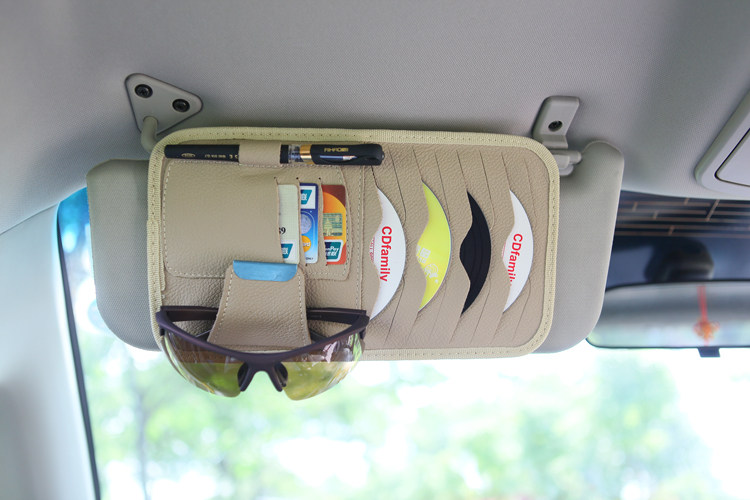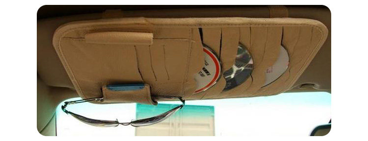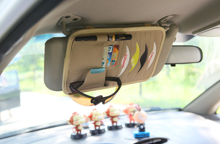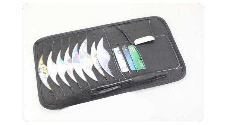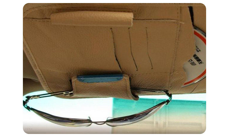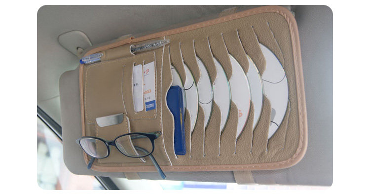 [Products] 1. It can be used to put the CD 8, ID card pocket 3, notepad pencil one. Glasses clip one; you can also clip cards, coins and bills and other debris. 2. CD visor leather bags, durable, very easy to use set in the car sun visor, washable easy.
