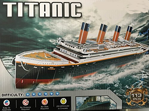 -. Binding : Toy -. Brand : Top Race -. EAN : 0627304172105 -. Feature : Top Race® 3D Puzzle, Titanic Puzzle, No Glue, No Scissors, Easy to Assemble. (113 Pieces) / Large 32" Inch Titanic Ship, easy, fun and safe for children to assemble. / Beautifully detailed and made of the highest quality paper foam which will not break. / Great for children's education, imagination, and intelligence development. / Will make a great gift, souvenir or for home or school decoration. For ages 6+ -. IsAdultProduct : 0 -. Label : Top Race -. Manufacturer : Top Race -. MPN : 3D-925 -. PartNumber : 3D-925 -. ProductGroup : Toy -. ProductTypeName : TOYS_AND_GAMES -. Publisher : Top Race -. Studio : Top Race -. Title : Top Race® 3D Puzzle, Titanic Puzzle, No Glue, No Scissors, Easy to Assemble. (113 Pieces) -. UPC : 627304172105