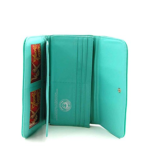-. Brand : Betty Boop -. Department : womens -. Feature : Betty Boop tri-fold wallet with two button closure / The wallet size is 8(L) x 4(H) x 1(W) inches. / Officially licensed Betty Boop product / More details in the description -. ProductGroup : Shoes -. ProductTypeName : HANDBAG -. Size : Medium -. Title : Betty Boop Tri-fold Wallet with Metal Studs and Rhinestones