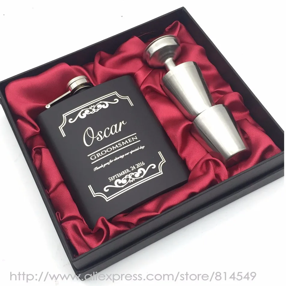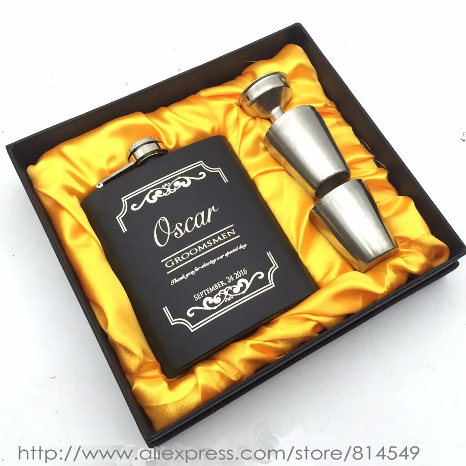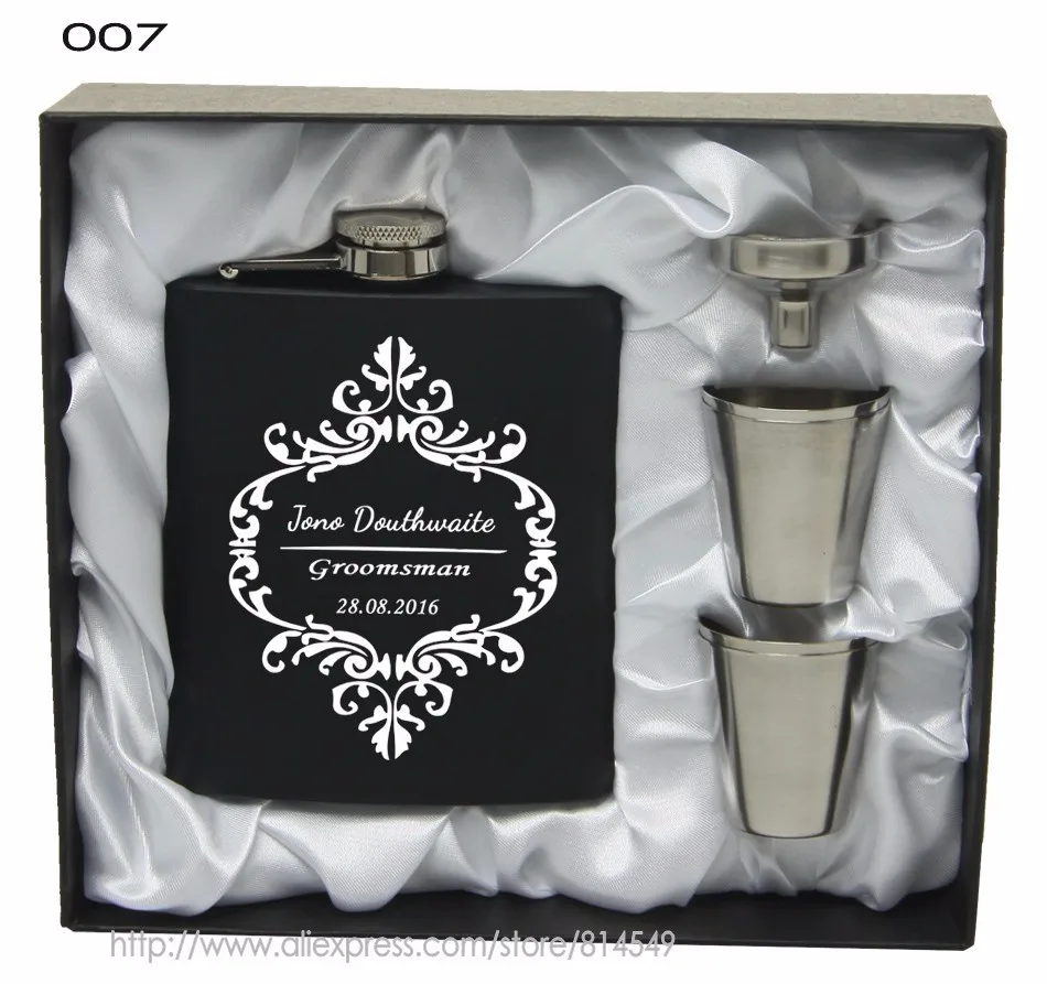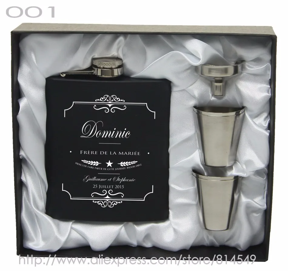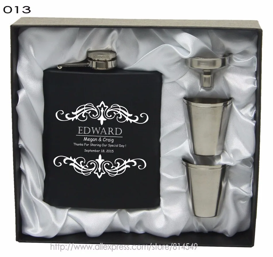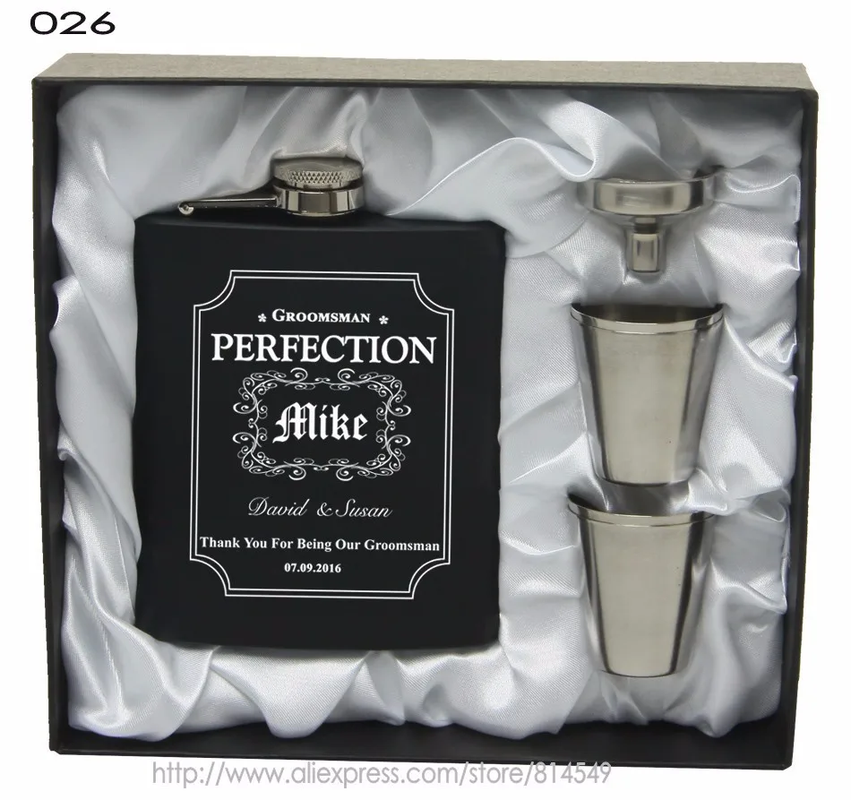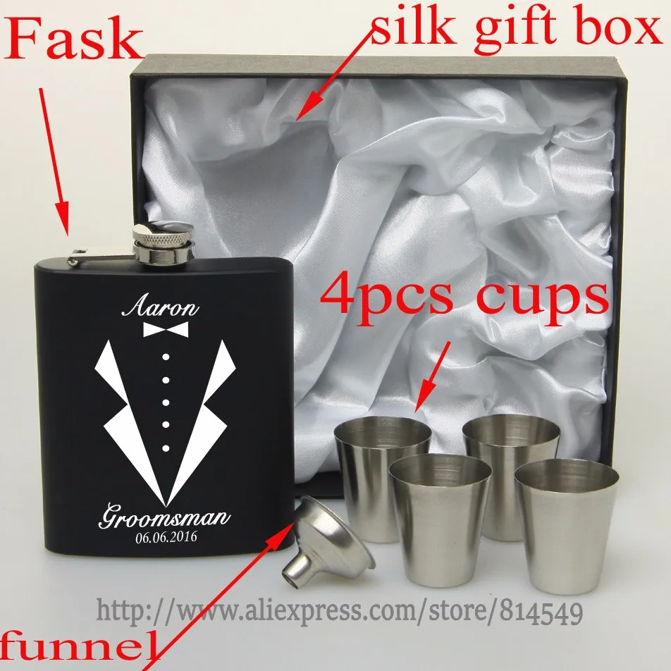 you can get :6oz personalized flask + 4 pcs cups +funnel + gift box