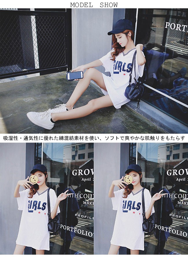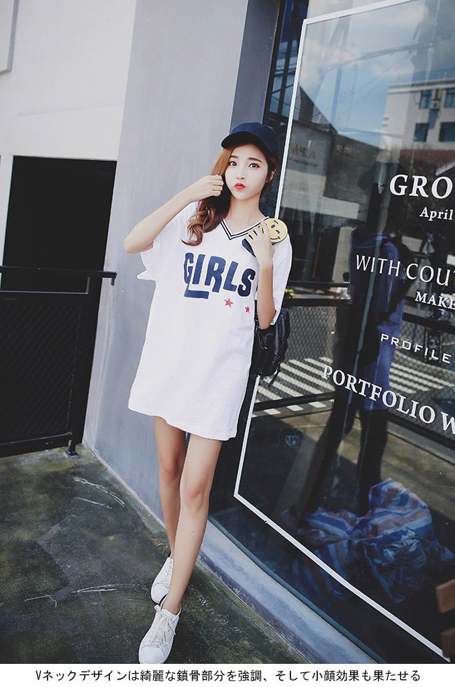 ロングTシャツ 五分丈袖 レディース ワンピース Tシャツ ゆったり 女性用 半袖Tシャツ 夏物 Tシャツワンピ カジュアルレディース用のロングTシャツが登場吸湿性・通気性に優れた綿混紡素材を使い、ソフトで爽やかな肌触りをもたらす半袖仕様にゆったりとしたシルエットで更に解放感たっぷりの着心地Vネックデザインは綺麗な鎖骨部分を強調、そして小顔効果も果たせる若者ならではのトレンディーなカジュアル感が溢れるデザインは一番のポイントワンピースとしてもトップスとしてもとても素敵な一枚カラー:写真色素材 綿混紡サイズ(cm) FF 着丈80 バスト116 肩幅53ご注意:※サイズは平置きサイズです。素人採寸ですので、若干の誤差がございます、ご了承ください。