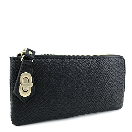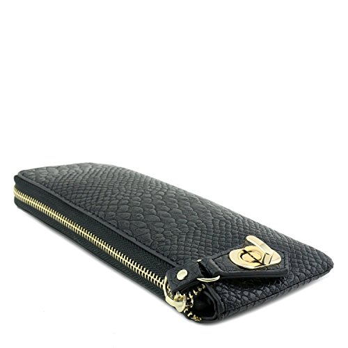 Snakeskin Slim Zip Around Wallet with Turnlock