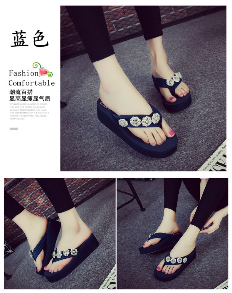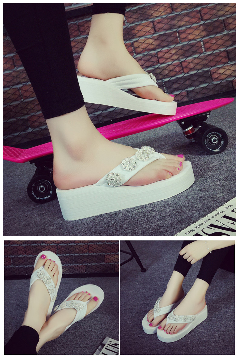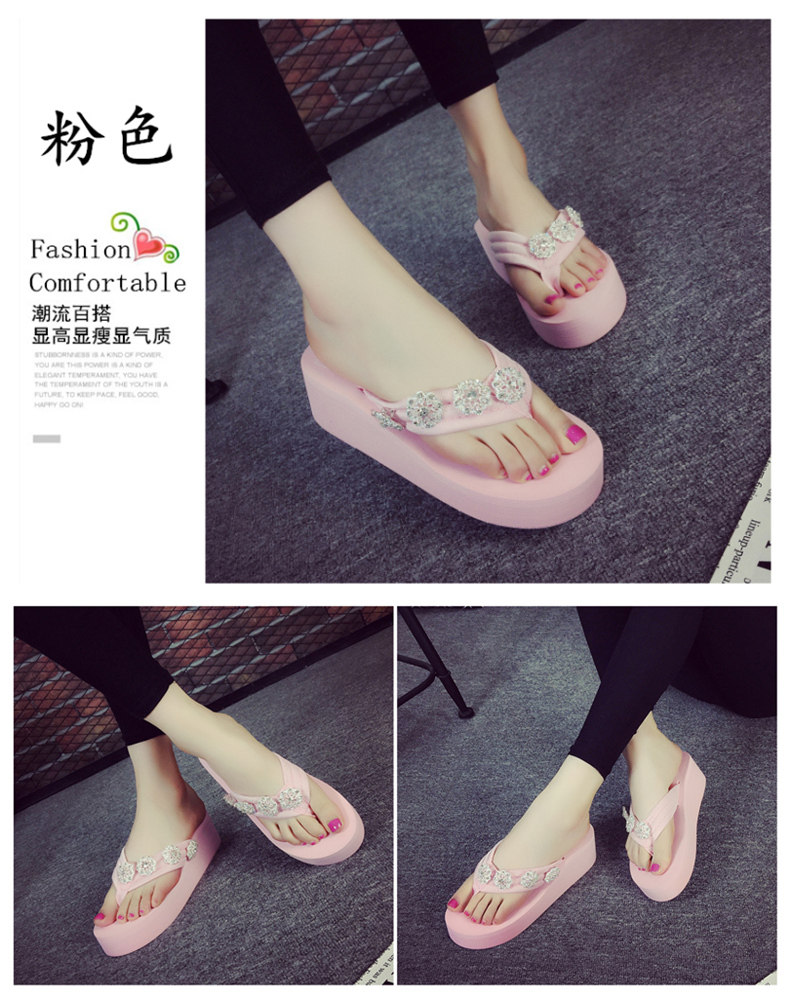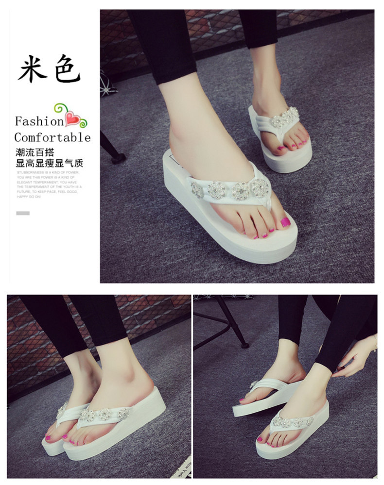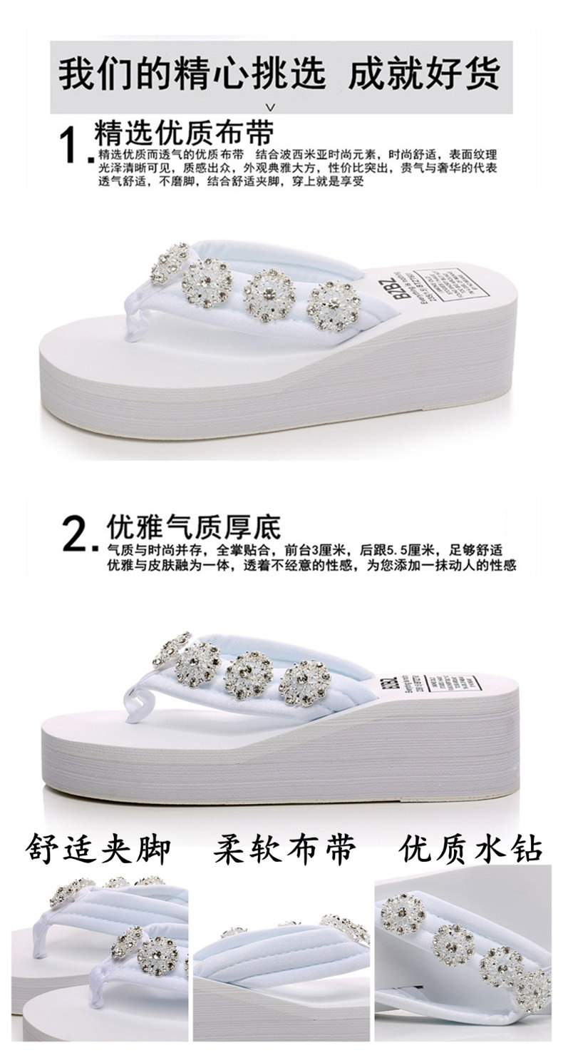 韩版坡跟凉拖鞋女夏时尚外穿水钻人字拖防滑夹脚沙滩鞋新款松糕鞋
