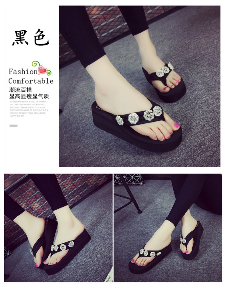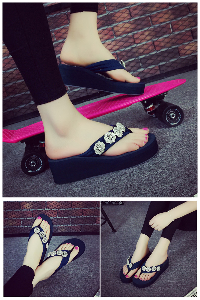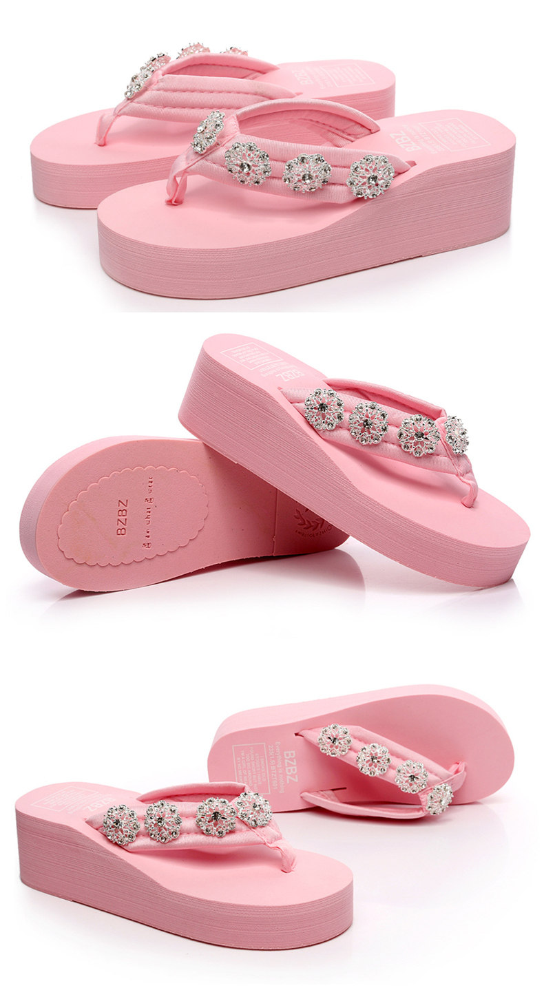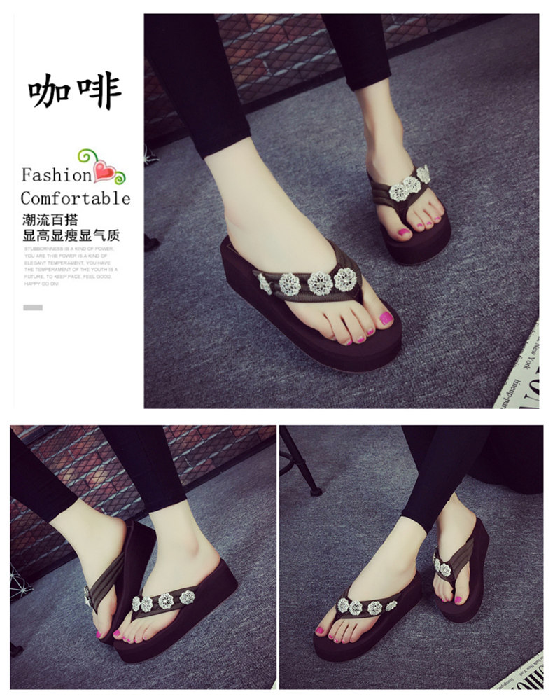韩版坡跟凉拖鞋女夏时尚外穿水钻人字拖防滑夹脚沙滩鞋新款松糕鞋
