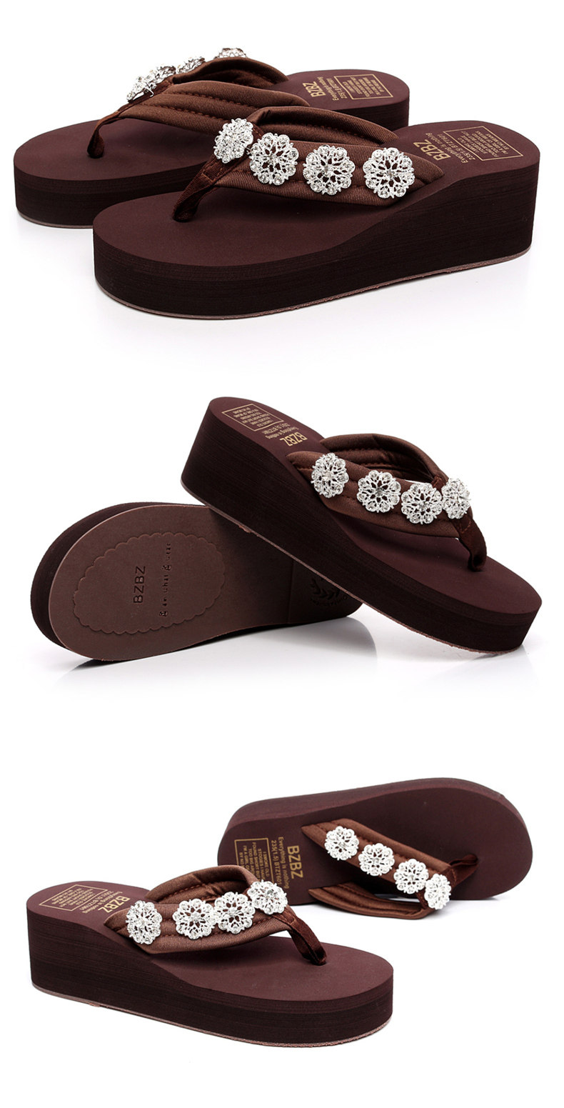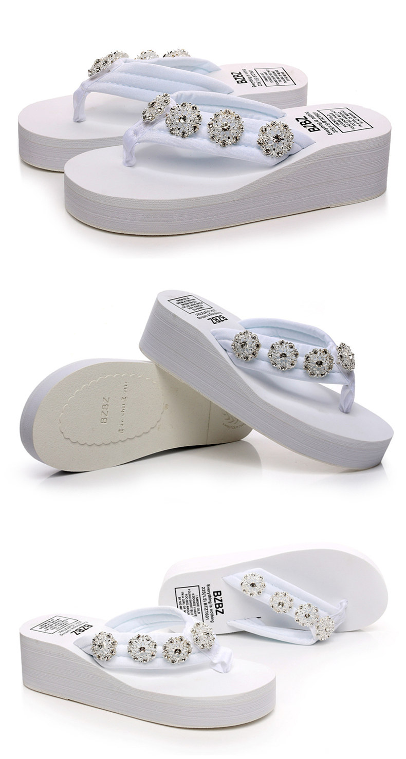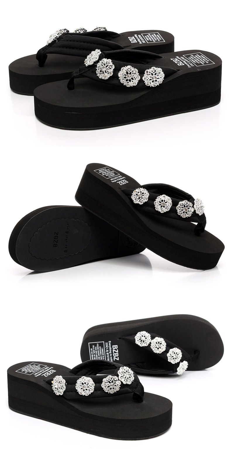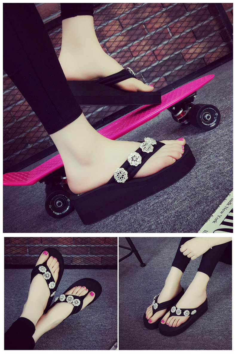 韩版坡跟凉拖鞋女夏时尚外穿水钻人字拖防滑夹脚沙滩鞋新款松糕鞋