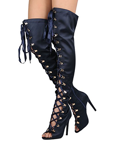 Product Description These velvet boots are made with a peep toe, lace up front and single sole. Also made with a thigh high rise, stiletto heel and side zip for easy slip on and off. 0