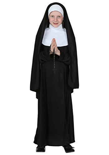 -. Brand : Fun Costumes -. Color : black,white -. Department : girls -. Feature : 100% polyester interlock knit fabric / Black long-sleeved dress has round neck, back zipper / White collar fastens w/ Velcro at back / Veil is sewn to headband that ties at back of neck / Also available in toddler, adult & plus sizes -. Label : Fun Costumes -. Manufacturer : Fun Costumes -. MPN : FUN2921CH -. PartNumber : FUN2921CH -. ProductGroup : Apparel -. ProductTypeName : APPAREL -. Publisher : Fun Costumes -. Studio : Fun Costumes -. Title : Big Girls' Nun Costume