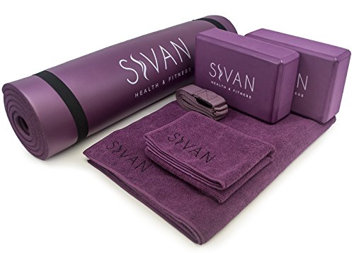 Take a journey through the self with Sivan 6-Piece Yoga Set! At 12mm, this yoga and Pilates mat is a full 1/2" thick and is one of the thickest mats on the market! The mat features specially designed memory foam offering superior impact absorption and comfort. Thick enough to protect your knees and joints while still allowing you to grip the floor for balance, its non-skid ridges will ensure that the mat never slips during use. The extra large dimensions (71" x 24") ensure complete comfort for people of all shapes and sizes. Constructed from durable and long lasting NBR foam, this mat is ideal for all types of yoga, especially restorative poses. Additionally, the mat features an integrated carry strap for your convenience and wipes down quickly and easily. Provide support and balance with our durable foam yoga blocks and deepen your stretch with our 8ft yoga strap that allows for better extension of the body. Our 68"x24" and 30"x20" yoga towels are designed with microfiber technology and prime absorption to provide slip-resistant and sweat-free workouts. A great set for yoga, Pilates, stretching and toning workouts. Be kind to your body and treat yourself to the Sivan 6-Piece Yoga Set, the ultimate set for any style of yoga! Package includes: 1/2" NBR yoga mat, 2 yoga blocks, 1 - 68"x24" yoga mat towel, 1 - 30"x20 yoga hand towel, and 1 yoga strap.Feature
