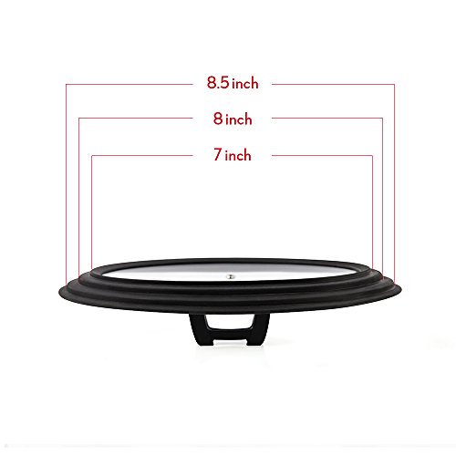 Let's face it.Keeping your pots with their matching lids is almost impossible ... but there's no need to worry. Designed to replace your your 7"glass lids, your 8"glass lids and your 8.5"glass lids,this silicone skillet lid is the kitchen tool you have been searching for far and wide.The unique shape of the heat-proof silicone rim is what makes the convertible kitchen lid able to fit most medium sized pots, pans and skillets.