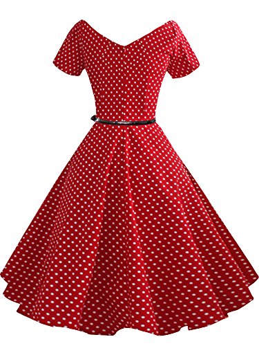 iLover Women 1950s V-Neck Vintage Rockabilly Swing Evening Party Dress