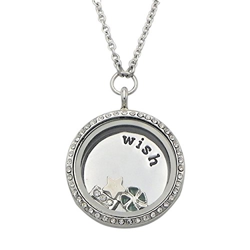 -. Title : Rosemarie Collections Women's Floating Charms Locket Pendant Necklace