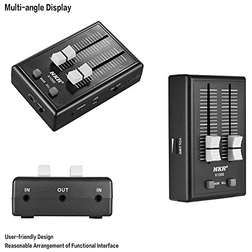 사양: 모델: K1000 제품 전압: 5V 제품 용량: 600mAh 작업 온도: -10℃ - 60℃ 전높음 조파일그러짐: ≤1% 주파수 특성: 40Hz-18KHz 출력 임피던스: 8 ohms 전원: AC어댑터,입력: AC110-220V 50/60Hz,출력: DC5.0-5.5V 1000mA 상품 치수: 10.6 * 6.9 * 3cm / 4.2 * 2.7 * 1.2in 상품 중량: 128g / 4.5oz 팩키지크기: 20.5 * 15.5 * 5cm / 8.1 * 6.1 * 2in(L * W * H) 팩키지의 중량:약325g / 11.5oz주의: 2개의 입력 잭은 동시에 동작할 수 없습니다.또한대응하는 입력 잭을 동작 시키려면 스위치를 적절한 위치(L또는R)에 조정할 필요가 있습니다.음량 조절 안주는 헤드폰의 음량을 조정하는 금년인지(든가) 할 수 없습니다. 팩키지 내용: 1 * K1000믹서 1 * AC어댑터 1 * USB전원 케이블 2 * 3.5mm오디오 케이블 1 * 수납대 1 * 영어 설명서