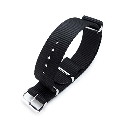 MiLTAT 21mm NATO Military Watch Band G10 Ballistic Nylon Color Black Polished