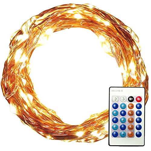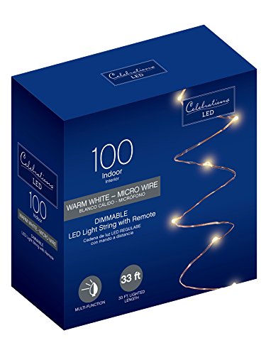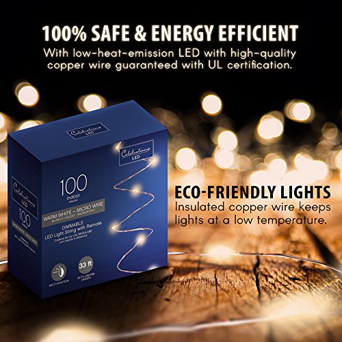 Celebrations 33ft 100 LED String Lights (Copper Wire Lights) Dimmable Multifunction with Remote Control, Waterproof Decorative Lights for Patio, Garden, Parties, Wedding (Warm White)