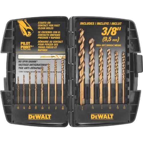 -. Binding : Tools & Home Improvement -. Brand : DEWALT -. EAN : 5526679994198 -. Feature : Maximum speed and life in stainless steel and other hard metals / Pilot Point tip starts on contact for clean, accurate holes and reduces lock-up on breakthrough / Industrial-strength cobalt for optimum life and durability in metal / Heavy-duty case made from industrial-grade ABS material / 14 bits ranging from 1/16-inch to 3/8-inch -. IsMemorabilia : 0 -. Label : DEWALT -. Manufacturer : DEWALT -. Model : DW1263 -. MPN : DW1263 -. NumberOfItems : 1 -. PackageQuantity : 1 -. PartNumber : DW1263 -. ProductGroup : Home Improvement -. ProductTypeName : TOOLS -. Publisher : DEWALT -. Studio : DEWALT -. Title : DEWALT DW1263 14-Piece Cobalt Pilot Point Drill Bit Set -. UPC : 028874112636