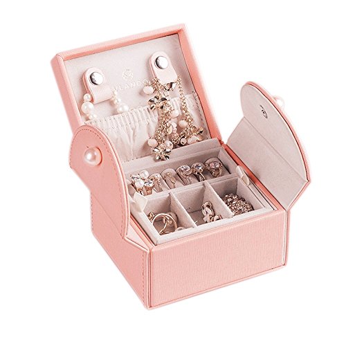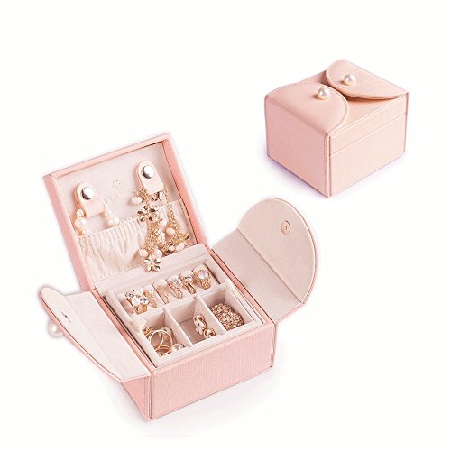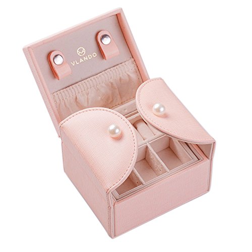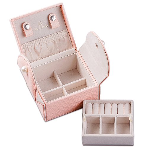 Vlando Akoya Two Tray Small Jewlery Box, Daily Wearing Jewelries Organizer, Travel Accessories -Pink