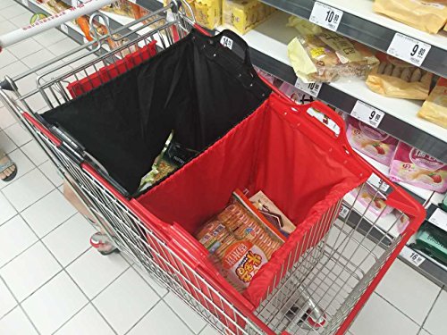 VAIIGO Reusable Shopping bag, Heavy Duty Large Shopping Bags Supermarket Grocery Shopping Trolley Bags Express Shopping Trolley Bag (Pack of 2) (red/black)