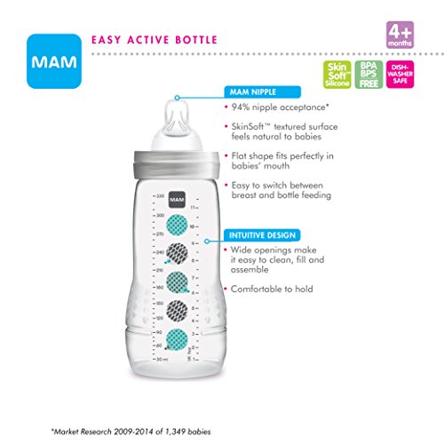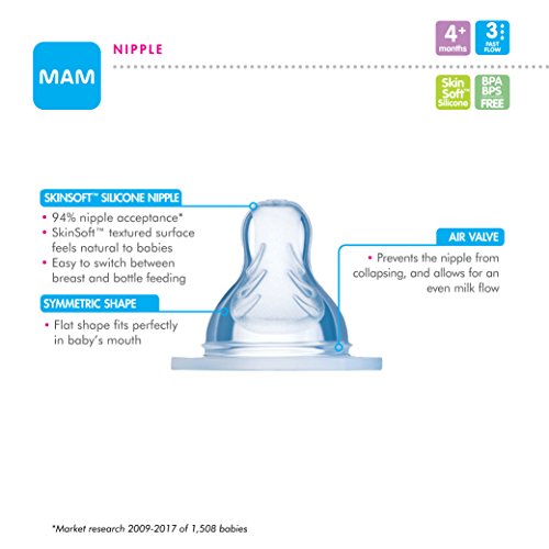 MAM哺乳瓶は、母乳で育てられた赤ちゃんと同様に授乳された赤ちゃんにとって理想的な哺乳瓶です。母乳のように感じるように設計されたSkinSoftニップルを搭載して、母乳育児と瓶授乳を切り替えるのは簡単で簡単です。さらに良いことに、94%*の赤ちゃんが喜んで飲んで飲んでいます。