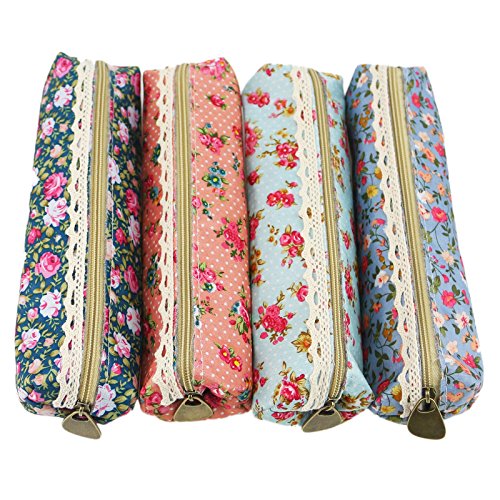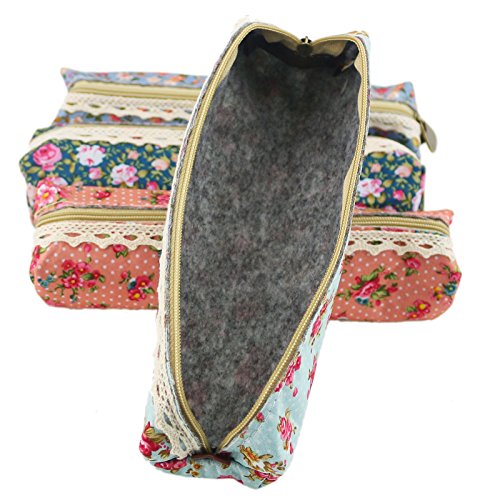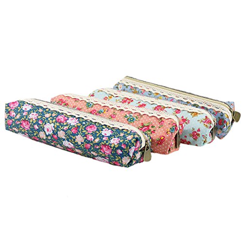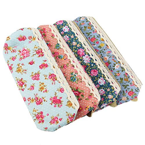 Ogrmar Fashion Cute Sweety Floral Pen Pencil Bag Case (Pink,Dark Blue,Light Blue,Green)