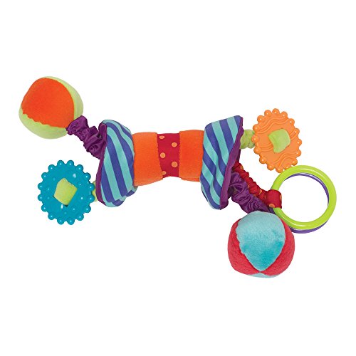 Just the mention of baby's new Ziggles sounds fun and intriguing! Soft, safe, and springy, this baby rattle and teether is geared for development and engagement. This baby toy is loaded with sensory enticing activities, along with ball shapes made from colorful fabrics for tactile experiences. Ringing balls, smooth ribbons, and the soothing teethers are attached to the toy's main body by unique, fabric-covered elastic cords. Since 1979, Manhattan Toy has been making award-winning, high quality, educational toys for your baby, toddler or kid. From infant toys and baby toys to sensory development toys, our goal is to provide the safest and best toys available. All of our products, from the newest concepts to our time-tested classics, are innovatively designed to inspire imaginative play and are routinely safety tested to pass strict CPSC, ASTM, EN71 and Health Canada safety standards.Feature