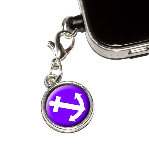 Graphics and More Anchor - Boat Sailing Purple Anti-Dust Plug Universal Fit 3.5mm Earphone Headset Jack Charm for Mobile Phones - 1 Pack - Non-Retail Packaging - Antiqued Silver