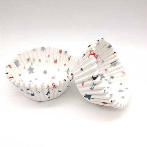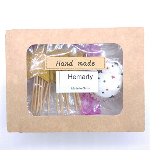 Hemarty Cupcake Kit White and Gold Cupcake Kit Star Cupcake Toppers White Cupcake Cases 48 cases and 24 toppers Per Pack Gold Star Toppers