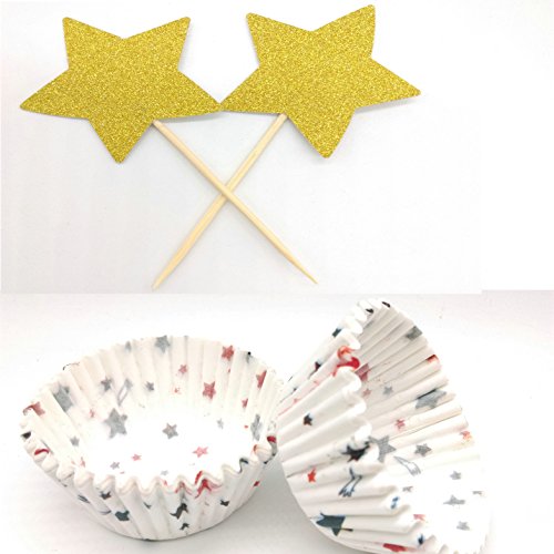 - -Packing : 24 Gold Star Cupcake Toppers +48 Baking Cups
