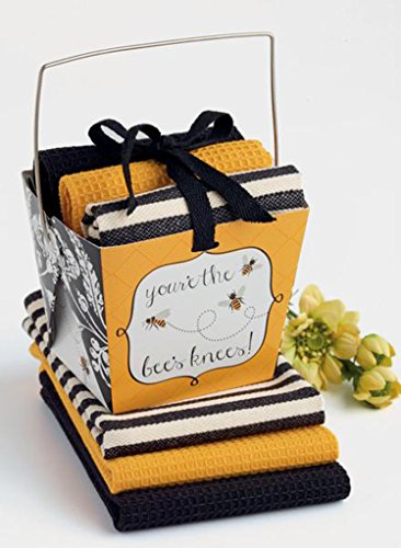 Bees Knees Take Out Gift Box with 3 Dishcloth Set