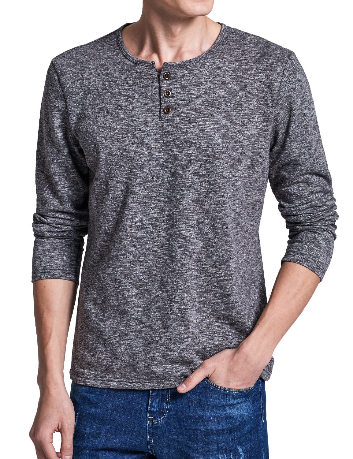 Neck is popular 3 button Y type Henry neck, fake layered specifications of layered style.
