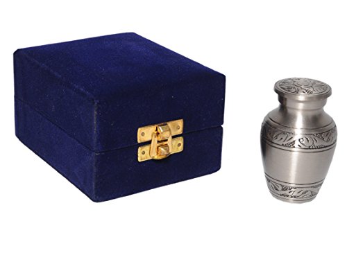 Classic Pewter Keepsake Urn - Forever Remembered Keepsake Urn With Fancy Box - Blue Token Urns - Keepsake Cremation Urn - Handcrafted Mini Urn for Ashes