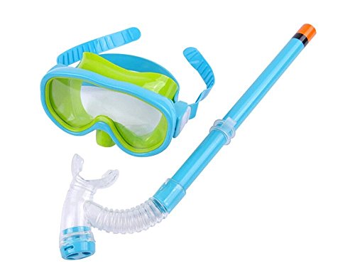 YuKing Kids Silicone Scuba Swimming Swim Diving Mask Snorkel Glasses Set Anti Fog Goggles (Lake Blue)