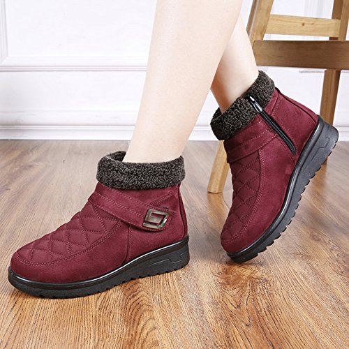 (getmorebeauty)/Women's/Boots/DIRECT FROM USA/getmorebeauty Women's Winter Snow Ankle Boots Buckle Velcro Warm Faux Fur Boots Shoes