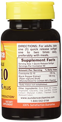 -. Binding : Health and Beauty -. Brand : Sundance -. EAN : 0840093103086 -. Feature : Supports heart health / Provides antioxidant support / Helps the body convert food into energy -. IsAdultProduct : 0 -. Label : Piping Rock Health Products -. Manufacturer : Piping Rock Health Products -. NumberOfItems : 1 -. PackageQuantity : 1 -. ProductGroup : Health and Beauty -. ProductTypeName : HEALTH_PERSONAL_CARE -. PublicationDate : 2015-06-14 -. Publisher : Piping Rock Health Products -. ReleaseDate : 2015-06-11 -. Studio : Piping Rock Health Products -. Title : Sundance Absorb Co Q-10 100mg Plus, 60 Count -. UPC : 840093103086