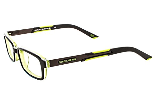Product Description Does he love to speak the techno language? Help him become fluent in these Skechers geometric rectangle frames. Before you know it he'll be too cool for school. Rectangle frame Spring hinges Branded case and cleaning cloth included. 0