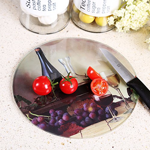 Multi-functional Tempered Glass Cutting Chopping Board Kitchen Surface Chef Board Diameter 8" 20cm Red Wine Round